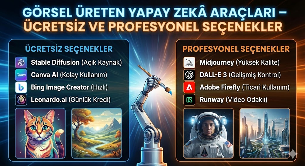 Ücretsiz ve Profesyonel AI Görsel Araçları Karşılaştırma Tablosu